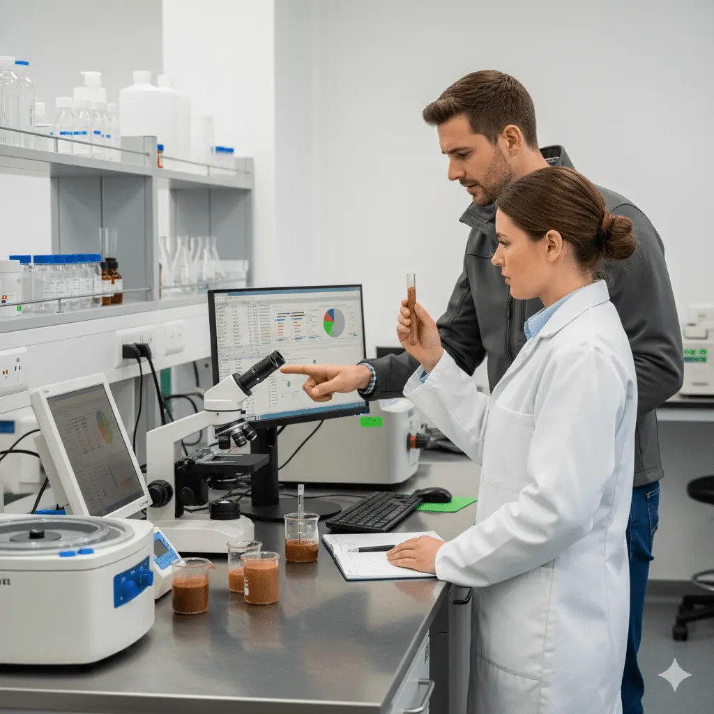 • Unser Partnerlabor wertet die Probe aus. Wir besprechen die Ergebnisse und geben eine konkrete Empfehlung zu Anwendung und Dosierung.